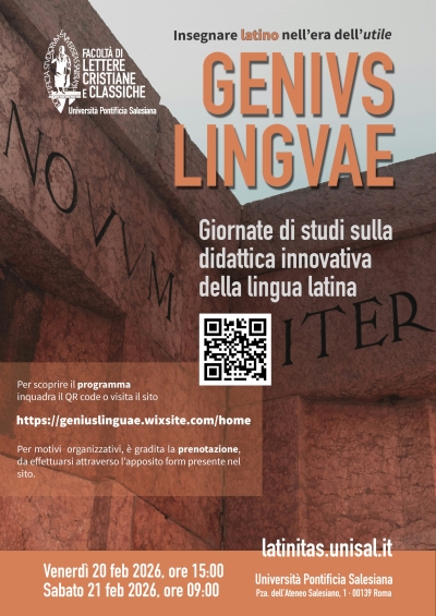 GENIUS LINGUAE: insegnare latino nell’era dell’utileLa Facoltà di Lettere Cristiane e Classiche promuove il Convegno internazionale Genius Linguae, due giornate di studio dedicate alla didattica innovativa delle lingue classiche. L’incontro riunirà studiosi di rilievo internazionale per discutere il futuro dell’insegnamento del latino, confrontare approcci metodologici tradizionali e contemporanei e offrire un’occasione di aggiornamento pedagogico per docenti e ricercatori. Sala Juan Vecchi 15:00 |